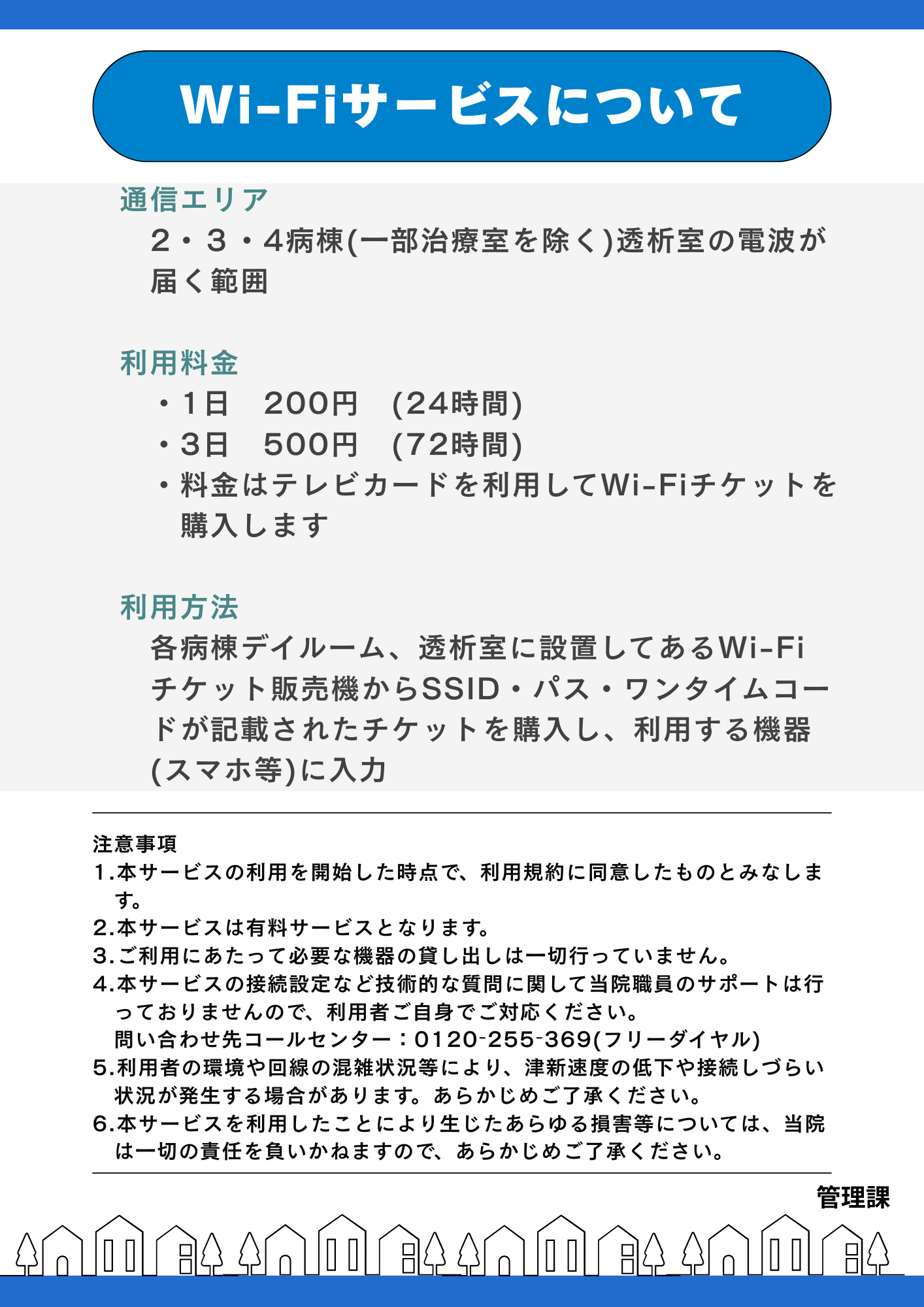 令和7年12月16日(火)より当院では患者様サービス向上の一環としてWi-Fiサービス(有料)を開始いたします。